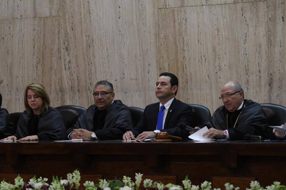 Previo al acto en el que tomaría posesión el nuevo presidente de la Corte Suprema de Justicia, Morales se reunió con los magistrados. Después estuvo presente en el acto de toma de posesión, donde Pineda Barales aseguró que su gestión será de “puertas abiertas” y que espera que la justicia fluya como el agua.