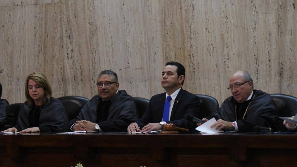 Previo al acto en el que tomaría posesión el nuevo presidente de la Corte Suprema de Justicia, Morales se reunió con los magistrados. Después estuvo presente en el acto de toma de posesión, donde Pineda Barales aseguró que su gestión será de “puertas abiertas” y que espera que la justicia fluya como el agua.