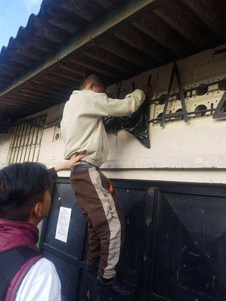 Los alumnos colocaron moños negros y letreros con mensajes dedicados a “Mayimbu”, como le decían al primero de los fallecidos.