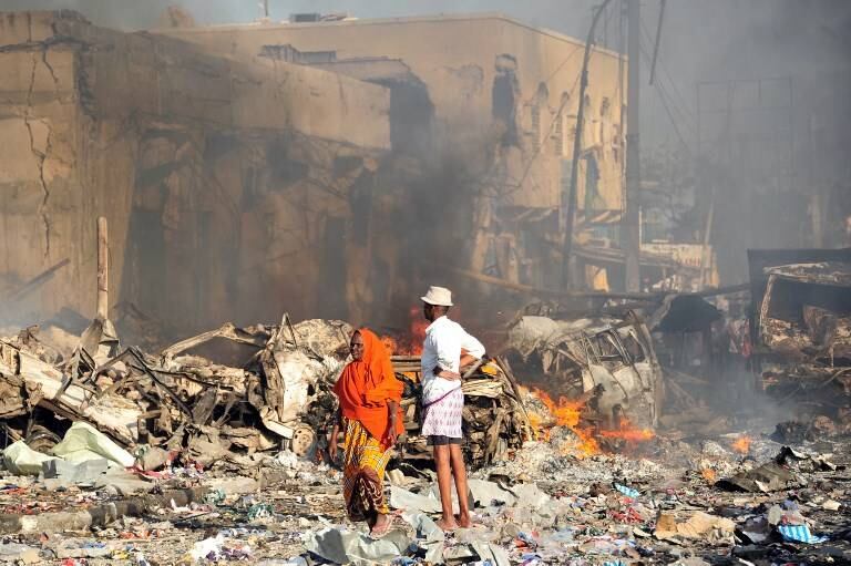 “Recibimos diferentes cifras de los centros médicos, pero por el momento hemos confirmado 137 muertos, en su mayoría calcinados, a tal punto que son irreconocibles. El balance de muertos puede agravarse ya que hay más de 300 heridos, algunos de ellos graves”, declaró Ibrahim Mohamed, un responsable policial. Se trata del peor atentado en la historia moderna de Somalia.