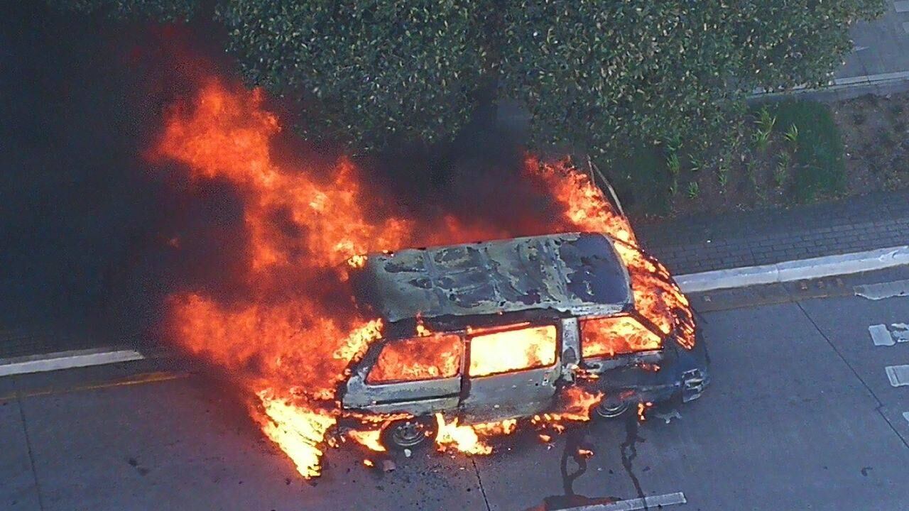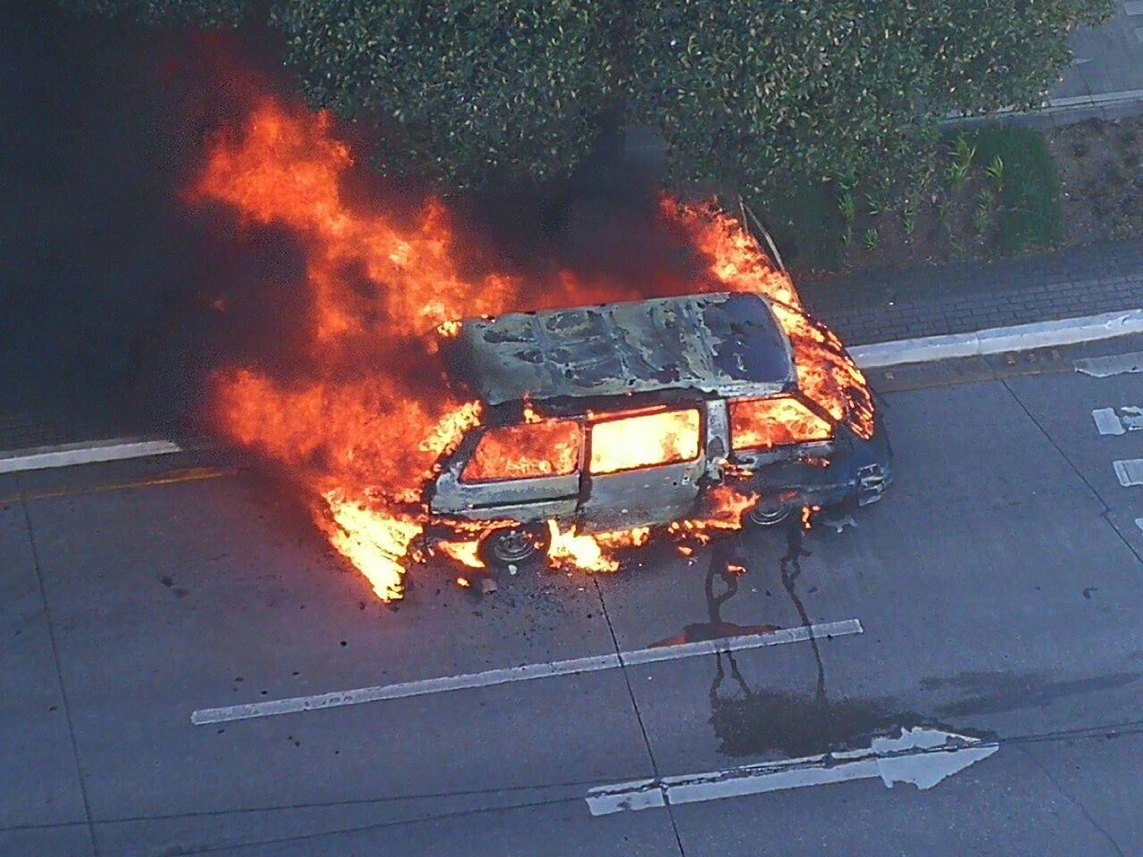 Por al menos ocho minutos las llamas consumieron el auto vacío.