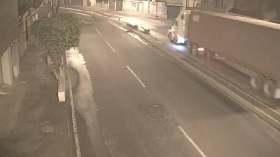 Luego de chocar, ambos salen disparados hacia la otra vía, donde el copiloto es arrollado en varias oportunidades por las llantas de un trailer que pasaba.