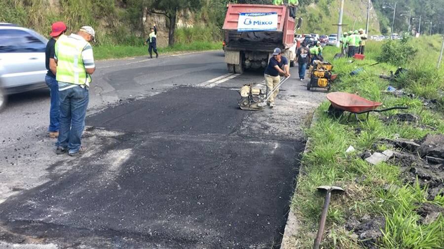 Según se evidencia en las fotografías compartidas por el alcalde mixqueño, varias cuadrillas son las que están realizando las labores de bacheo con el asfalto.