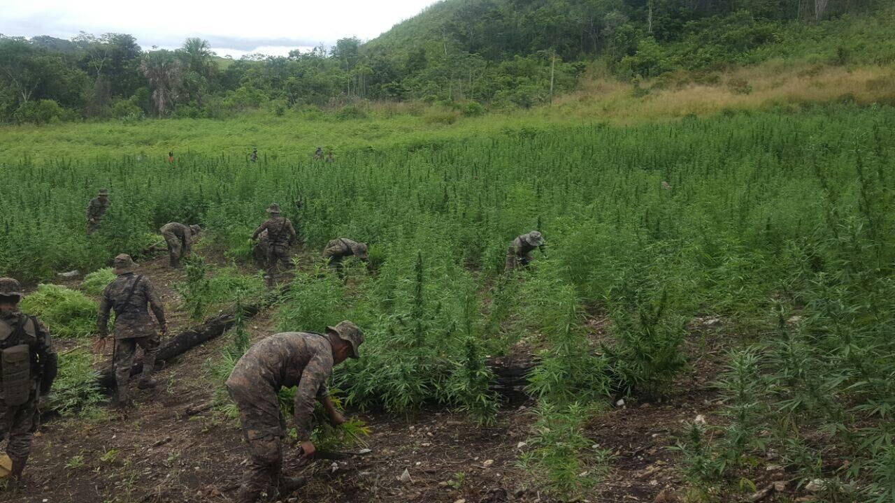 Los uniformados destruyeron doce mil metros cuadrados de las plantaciones. “Son nueve mil matas de marihuana”, informó la institución armada.