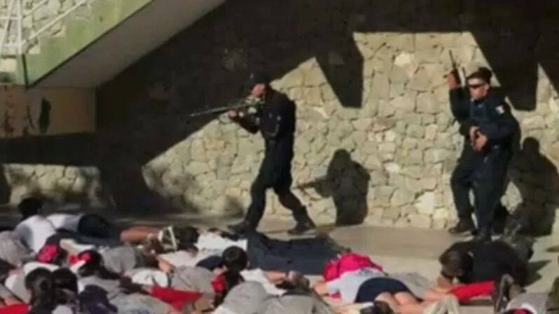 Al menos 500 estudiantes de la escuela Capitán Rosendo Robles, ubicada en la capital del estado mexicano de Baja California Sur, formaron parte de un polémico simulacro el pasado 20 de octubre.