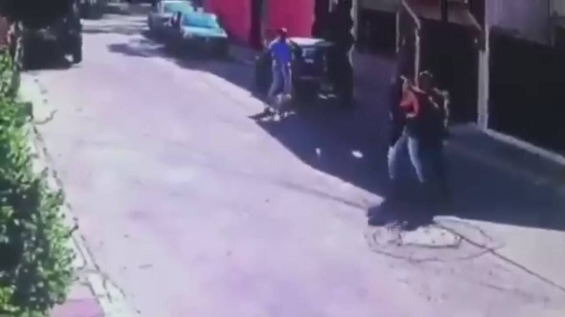 Una joven fue víctima de un asalto en las calles de la delegación mexicana de Gustavo A. Madero. El momento del atraco quedó registrado en video gracias a una cámara de seguridad instalada en la zona. En la grabación se observa cómo dos hombres se acercan a la mujer, a quien sorprenden por la espalda, y bruscamente le despojan de su cartera.