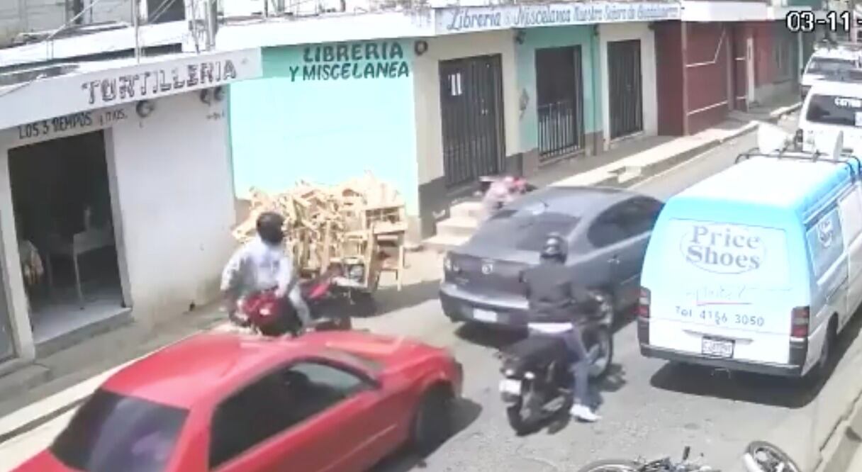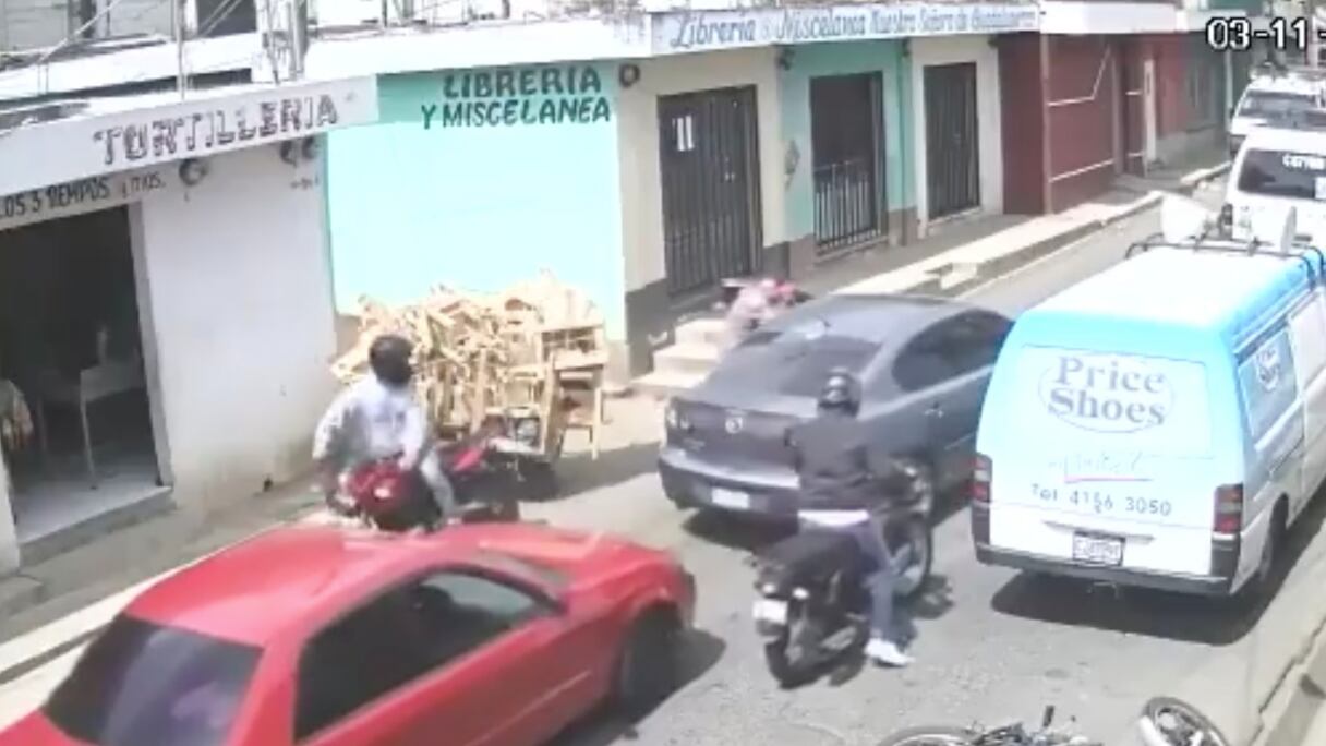 En el audiovisual publicado por la página de noticias "Pampichi News Amatitlan" se observa cuando tres hombres en dos motocicletas se acercan al auto que está varado en la ruta hacia Boca del Monte.