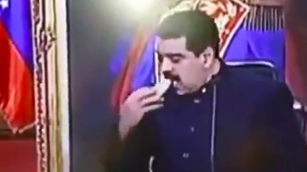 Mientras el mandatario conducía una de sus típicas intervenciones nacionales, en un momento tomó el alimento y le dio un bocado. ¿El problema? Un reciente informe de la Organización de las Naciones Unidas para la Alimentación y la Agricultura (FAO, por sus siglas en inglés) indica que la desnutrición en el país avanzó, además de cifras del Ministerio de Salud difundidas el año pasado de que los venezolanos están bajando hasta 8 kilos al año, lo que llaman "La dieta de Maduro".