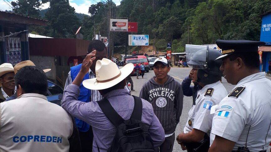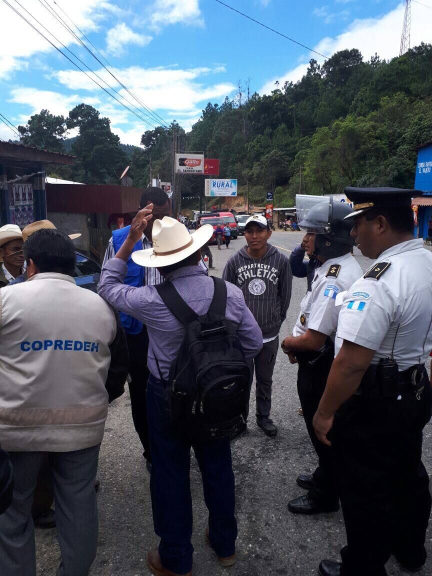 Elementos de la Policía Nacional Civil (PNC) se hicieron presentes a los sectores bloqueados para dialogar con los manifestantes y despejar las vías.