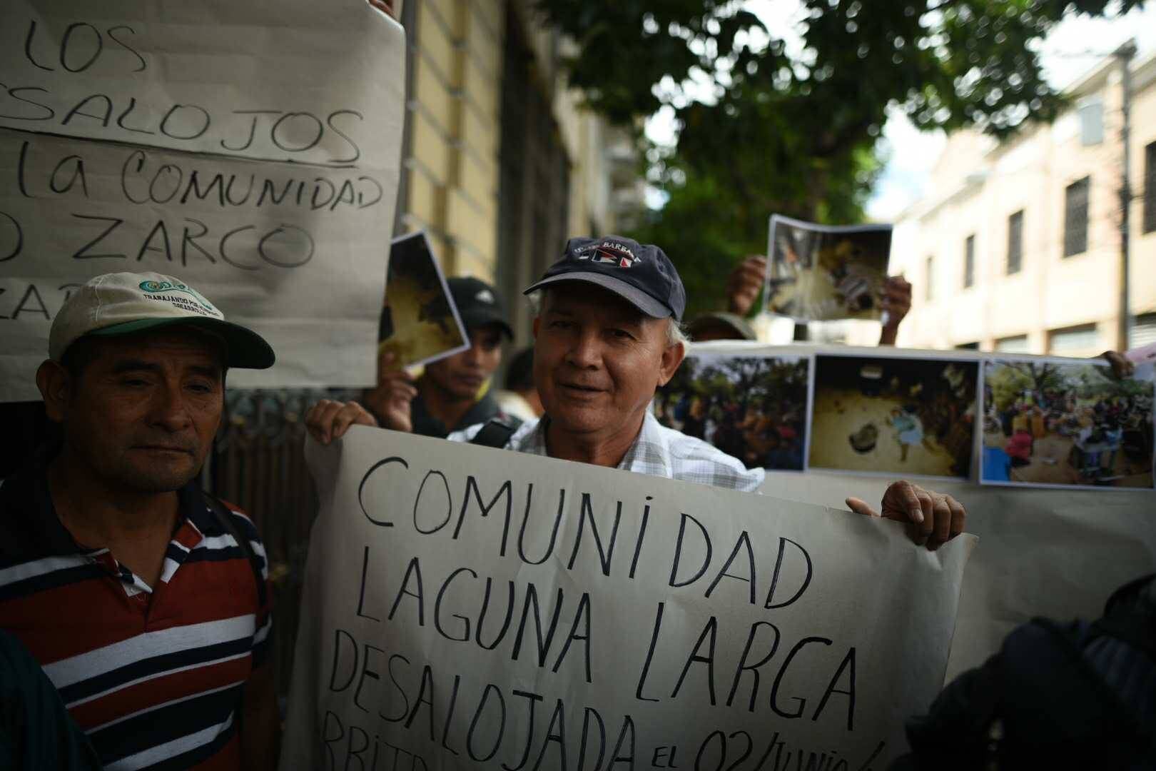 Constantino Velásquez y otras 15 personas protestaron frente al Congreso en representación de las más de 100 familias que fueron desalojadas de la comunidad Laguna Larga, en San Andrés, Petén.