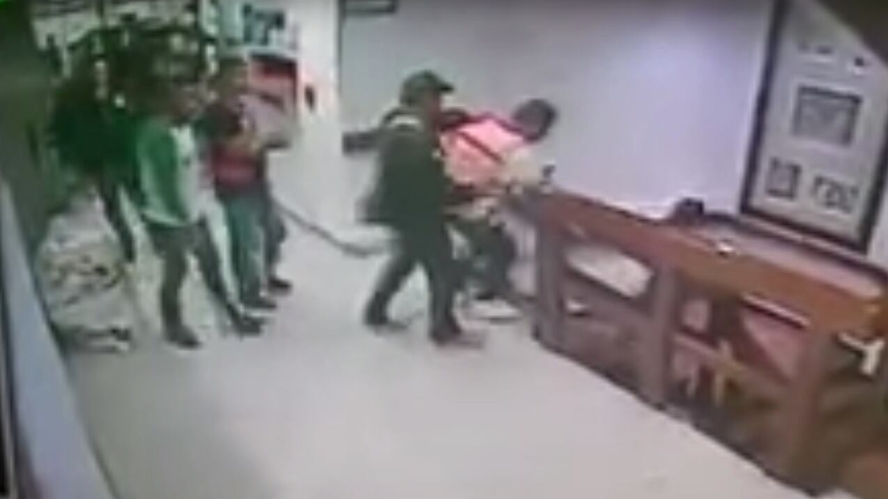 El impactante momento en el que el sospechoso escapa de sus captores y se lanza al vacío fue captado por las cámaras de seguridad del edificio. El presunto secuestrador cayó de una altura de ocho metros, aunque no estaba claro cuál era su estado de salud.