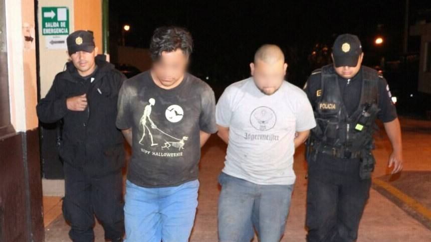 Los aprehendidos, identificados como Carlos Edenilson Valladares López y Kevin Eduardo Gil, ambos de 19 años, fueron copados por agentes de la Comisaría 16, en el bulevar El Caminero, frente al numeral 23-39 de la zona 6 de Mixco.