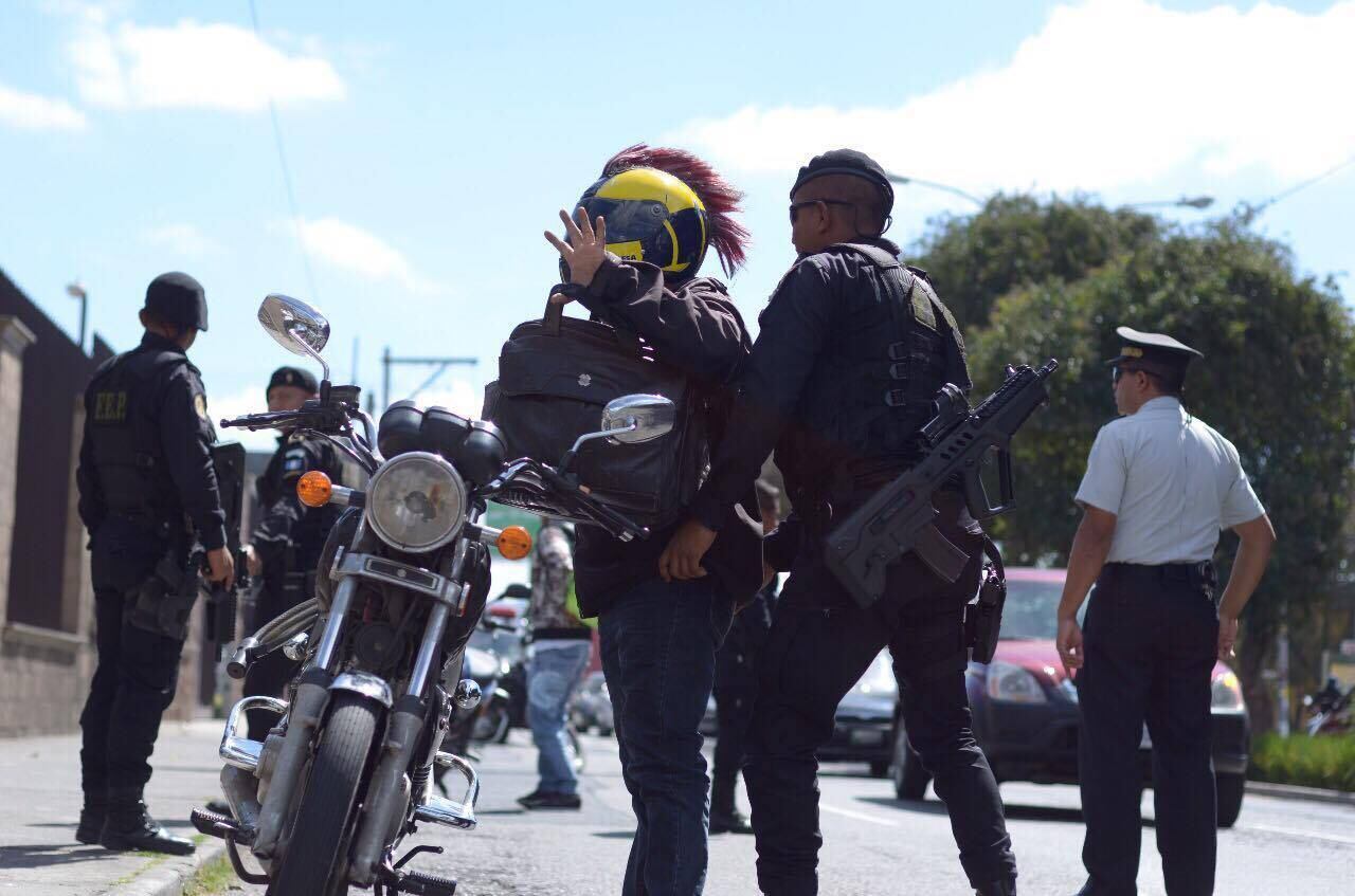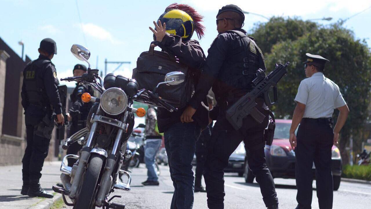 Agentes de la Policía Nacional Civil (PNC) realizaron este miércoles varios registros como una medida operativa para reducir la incidencia de asaltos de pilotos y peatones en semáforos por personas que viajan en motocicleta.