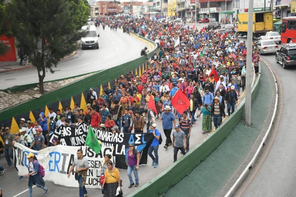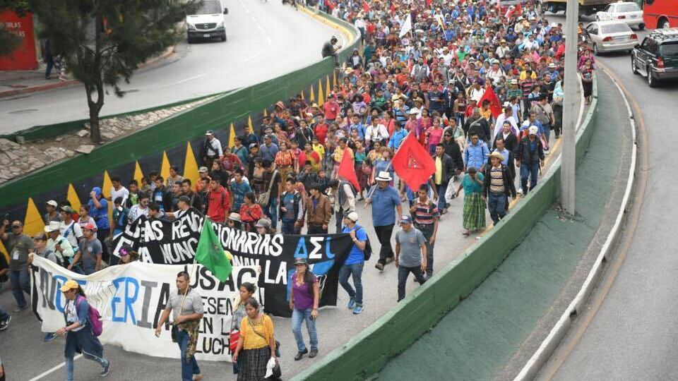 Durante el recorrido, los manifestantes pidieron el cese de los desalojos en las comunidades y reformas a la Ley Electoral.
