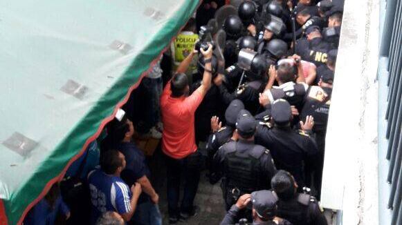 En el momento en que lo sacaron de los sanitarios, los comerciantes se aglomeraron para intentar vapulearlo, por lo cual las fuerzas de seguridad lanzaron gases lacrimógenos para dispersarlos.