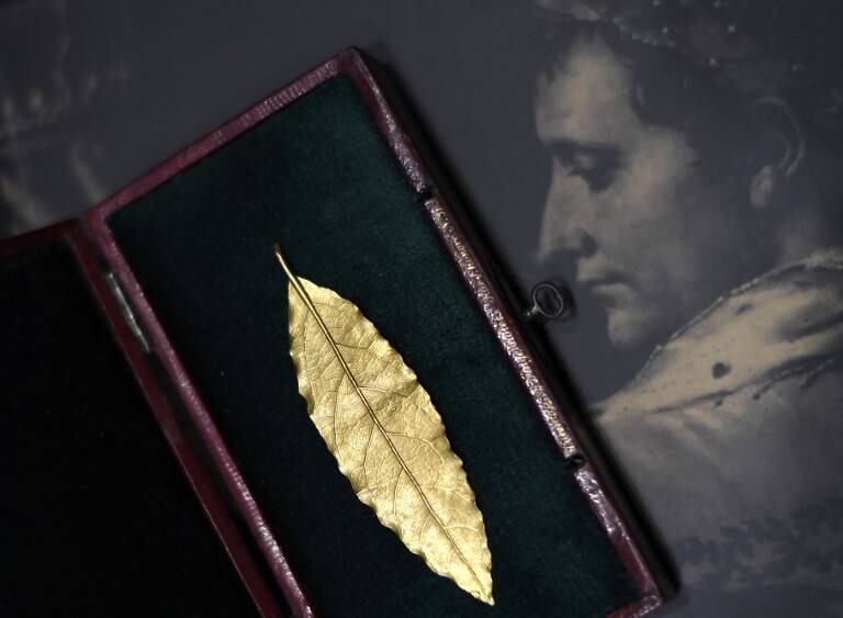 Una hoja de laurel en oro que estaba destinada a la corona llevada por Napoleón en su coronación de 1804 fue subastada el domingo en 625.000 euros, comisiones incluidas, durante una subasta realizada en Fontainebleau, cerca de París.