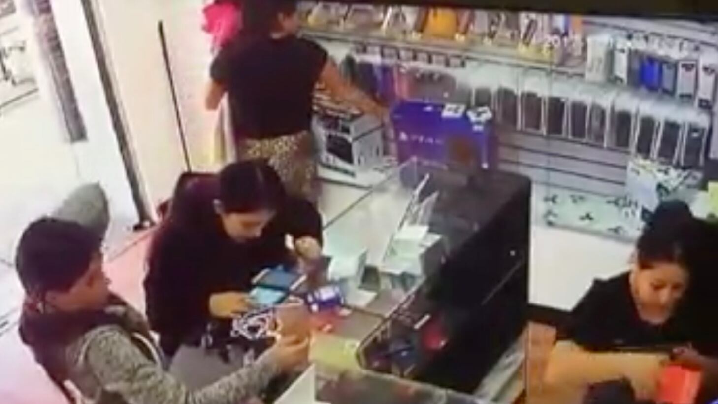En la cinta publicada en la página de Facebook de Stereo 100 se ve que que la mujer aprovecha que la dependiente del comercio está ocupada atendiendo a unos clientes.