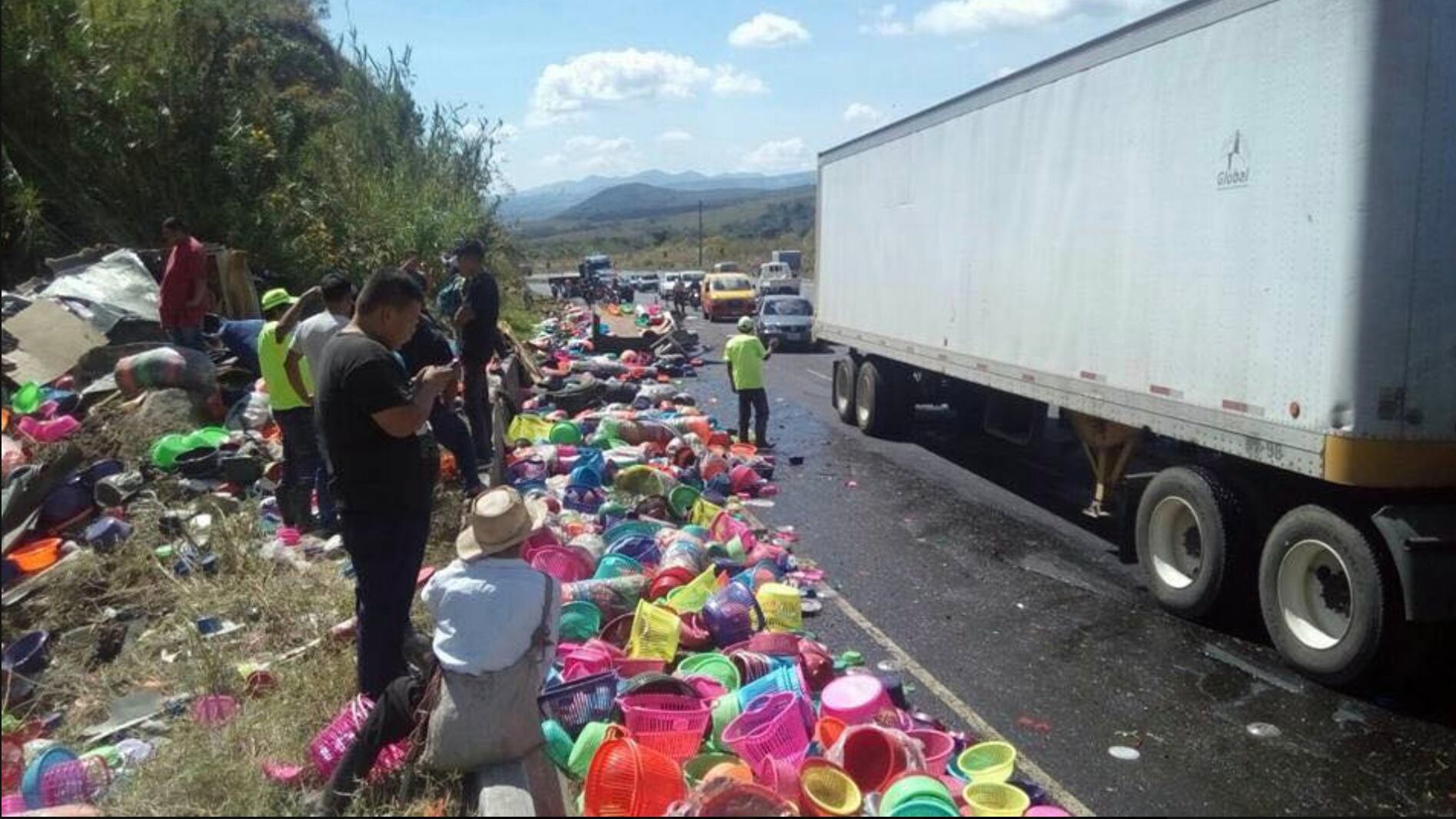El accidente ha generado tránsito lento en el lugar, debido a que los utensilios plásticos quedaron regados a lo largo de la carretera, por ello, Provial habilitó un carril auxiliar para agilizar el paso de los vehículos.