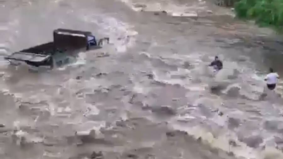 La página de Facebook "Pampichí News Amatitlan" compartió un video en el que se observa el camión casi hundido en su totalidad debido a la fuerza del agua.