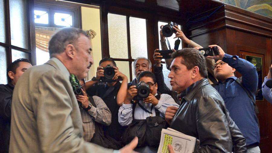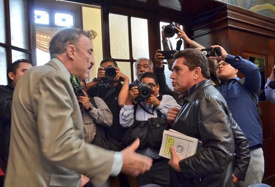 Acevedo abordó al diputado del PAN para decirle que él, representando al gremio magisterial, no llegó a ofender a nadie al Congreso. El intercambio de palabras fue así: