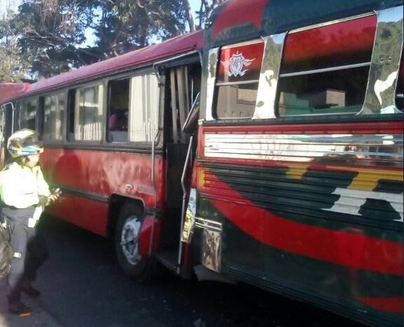 Una colisión entre dos unidades de transporte de pasajeros se registró este martes en la calzada San Juan y 4ª avenida de la zona 7 de Mixco.
