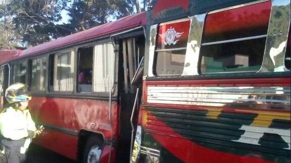 Se trata de un autobús urbano y un extraurbano, los cuales por causas que se desconocen, chocaron de frente.