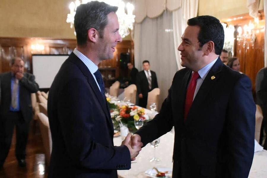 Esto demuestra que Estados Unidos apuesta por el futuro de Guatemala y lo está demostrando, no sólo trabajando con las inversiones ya presentes, sino también trayendo inversiones de fuera", aseguró el diplomático durante una reunión de trabajo en la que participó el presidente Jimmy Morales así como varios ministros y comisionados en Casa Presidencial.