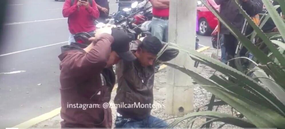 Con arma en mano, el ciudadano, con el apoyo de otras personas, controló a los dos sujetos que viajaban en una motocicleta y que según testigos despojaban de sus pertenencias a conductores y peatones que transitan por el lugar.