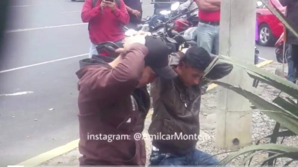 El hombre, a quien en las redes llamaron héroe, obligó a los hombres a colocarse de rodillas y los retuvo hasta que se hicieron presentes elementos de la Policía Nacional Civil (PNC) y los detuvieron.