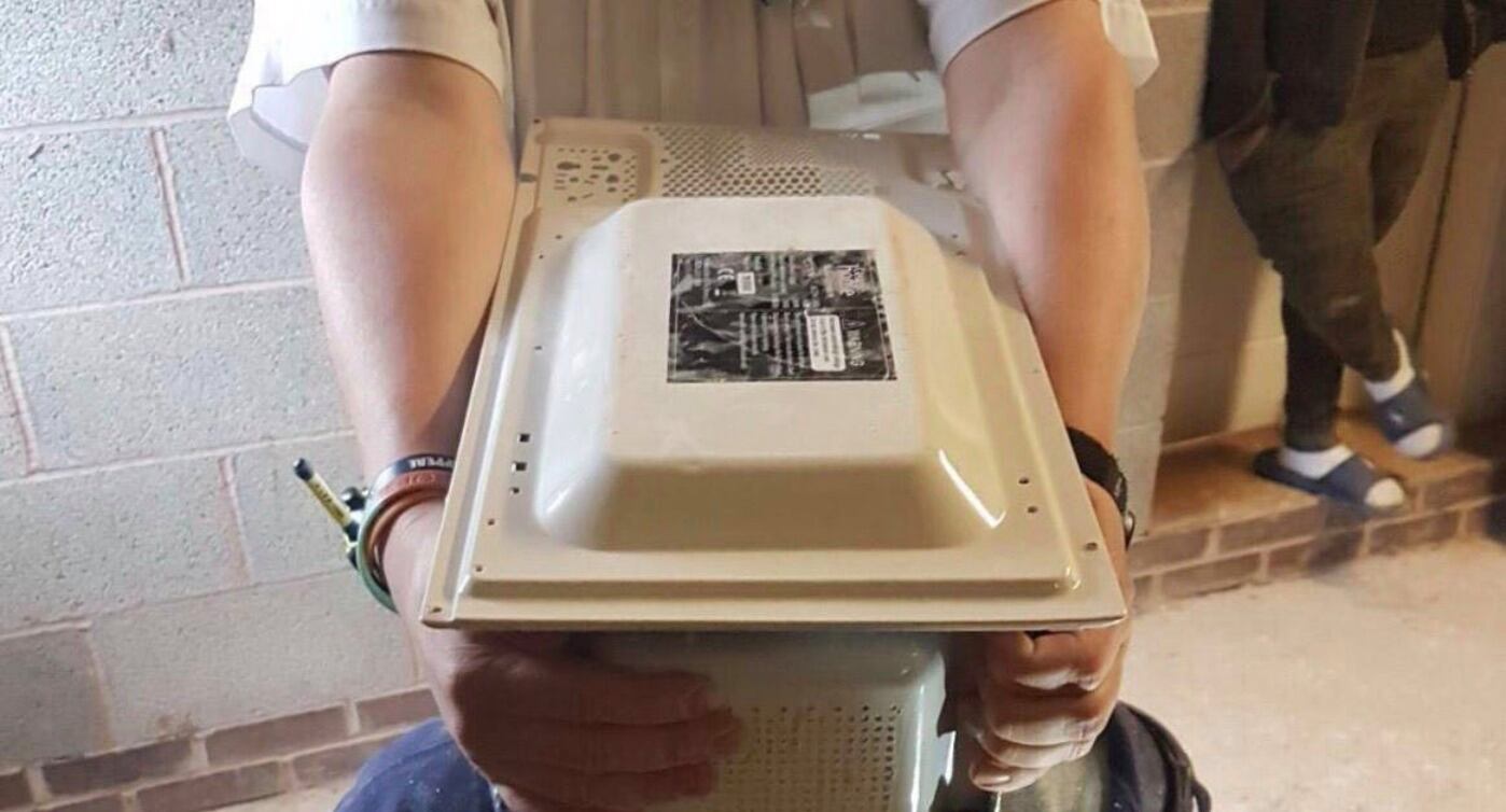 Pero todo salió tan mal y cuando sus amigos intentaron retirar el electrodoméstico, notaron que el joven estaba atascado.