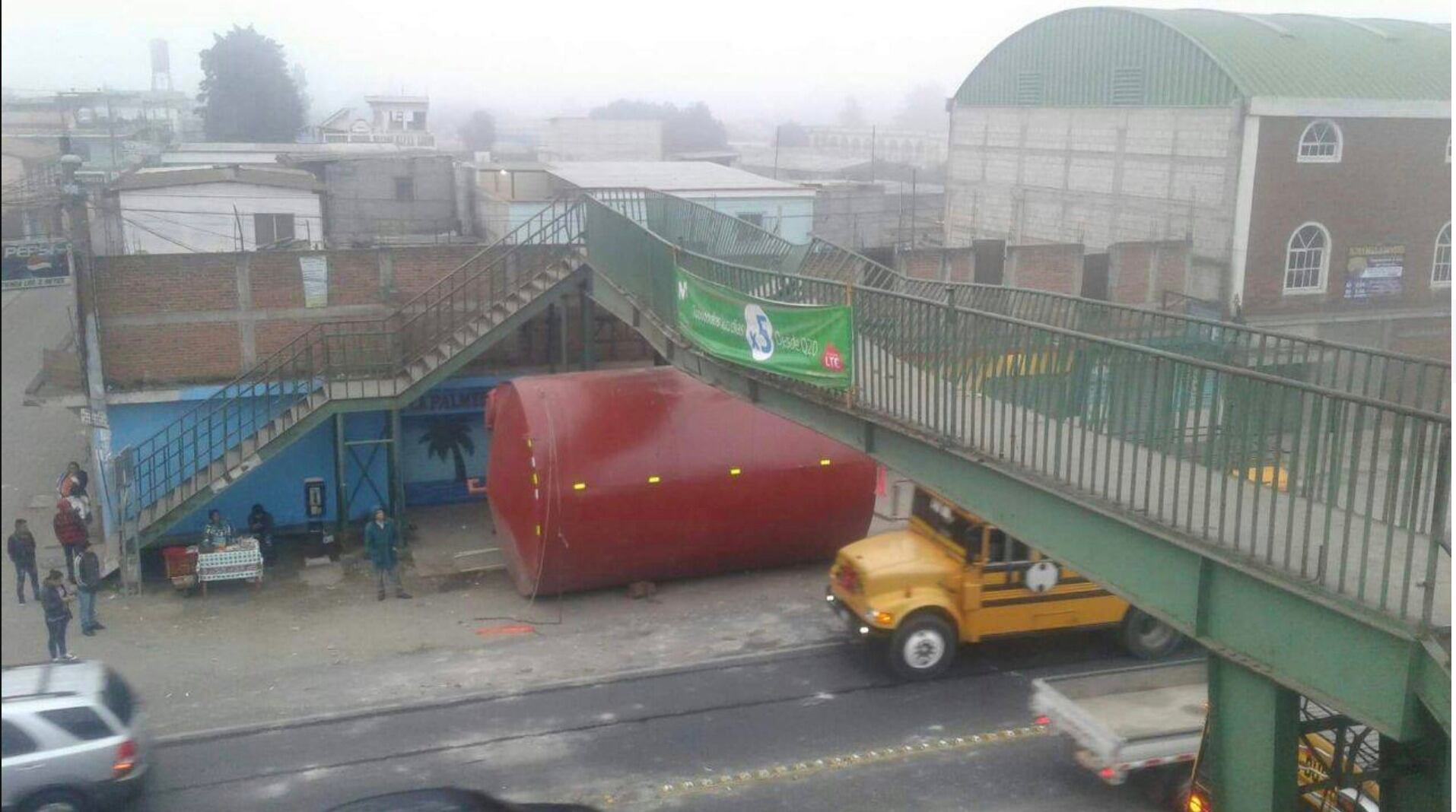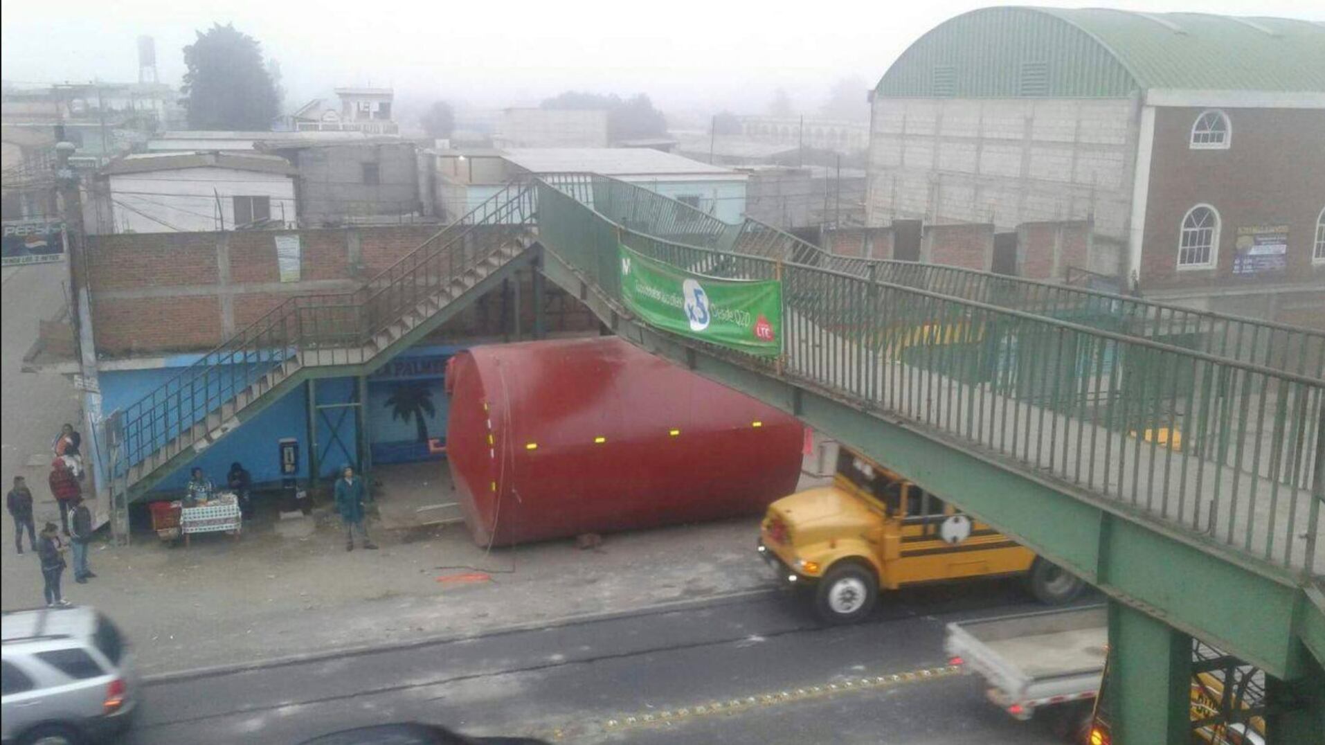 Esta mañana un camión cisterna colisionó contra una pasarela ubicada en el kilómetro 51 de la ruta Interamericana, específicamente frente a la estación de Bomberos Municipales del Tejar Chimaltenango.