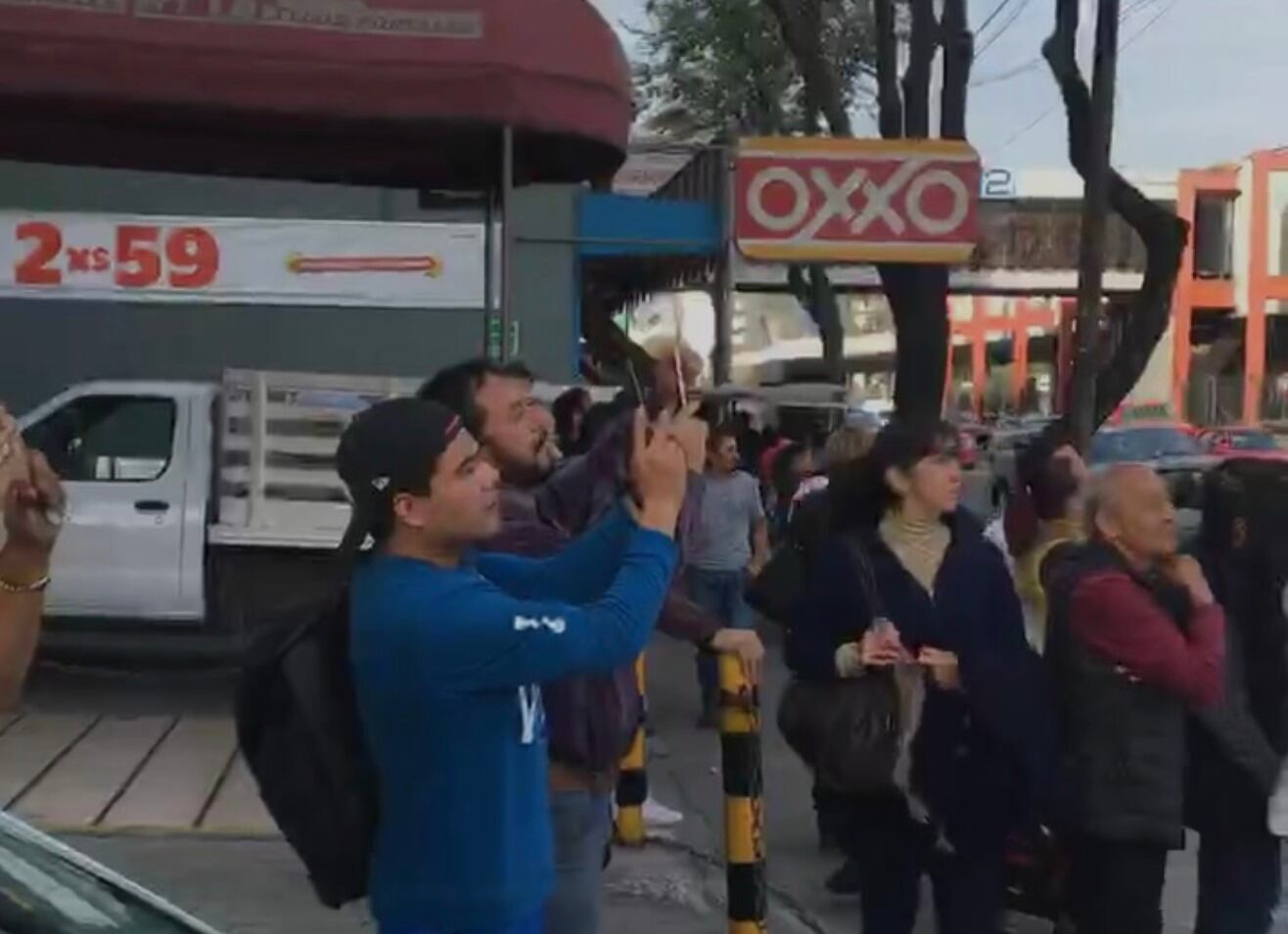 El video muestra a un grupo de personas detenidas señalando al cielo, pues observaron “pequeños puntos blancos” sobrevolando el lugar.