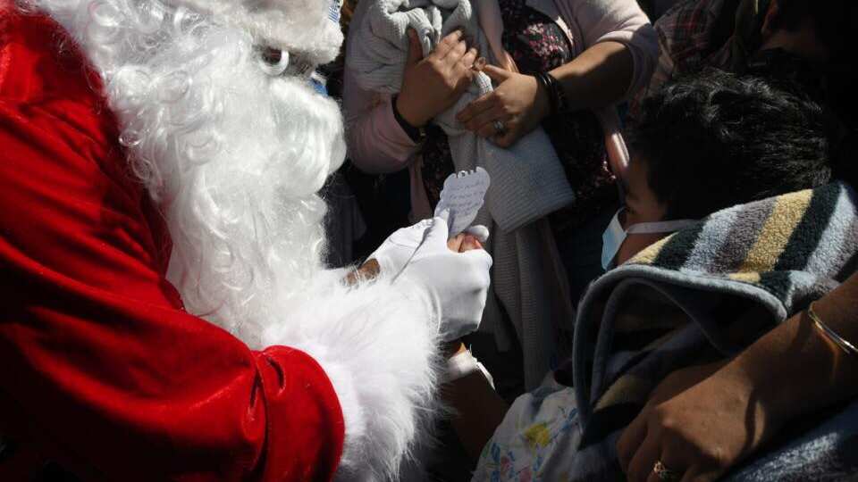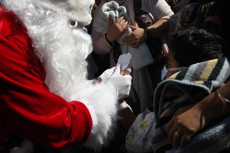 Sentado en una silla de ruedas y usando una mascarilla, el menor entregó al hombre de la barba blanca y saco rojo una carta con el siguiente mensaje: