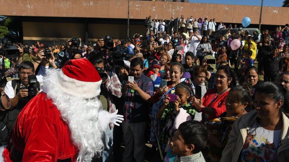Con su distintivo “jo, jo, jo”, Santa se acercó a los menores, quienes aprovecharon a abrazarlo y compartir con él. Además, recibieron los regalos que el hombre de la barba blanca y saco rojo les llevaba.