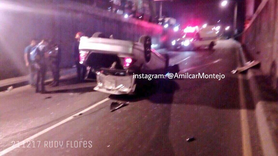 Un vehículo volcó cuando se conducía por el viaducto Atlántida y como consecuencia resultaron heridas dos personas.