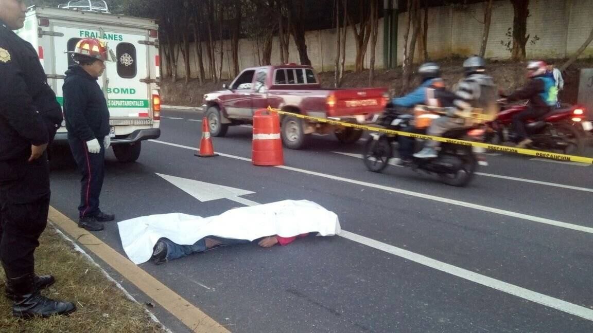 Una persona falleció este viernes tras ser arrollada por un automóvil en el kilómetro 18.5 de la ruta a El Salvador. El hecho ocurrió en el lado de la carretera que conduce hacia la Ciudad de Guatemala.