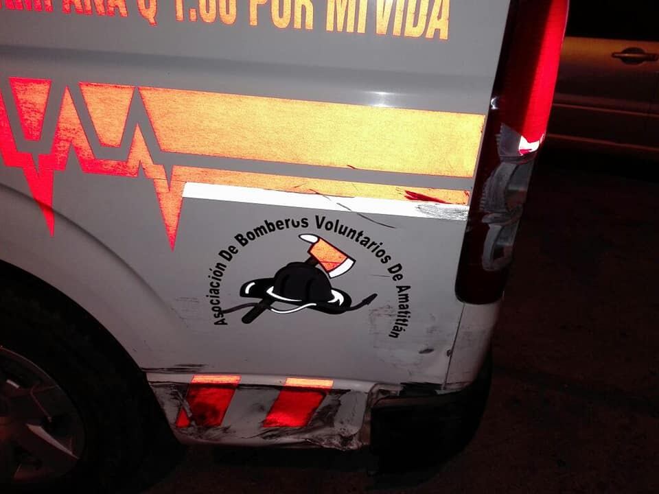El cuerpo de Bomberos Voluntarios del municipio de Amatitlán dio a conocer que una de sus ambulancias fue impactada por un vehículo conducido por una persona supuestamente ebria.