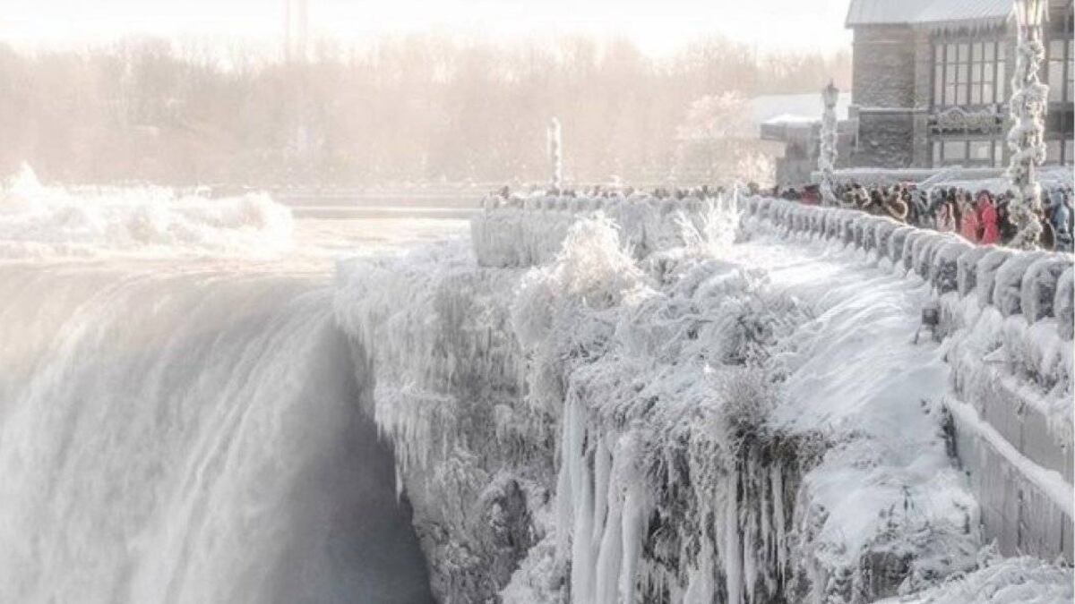 Las históricas Cataratas del Niágara, ubicadas en la frontera entre Canadá y Estados Unidos, amanecieron congeladas este jueves; hecho compartido por los visitantes a través de redes sociales.
