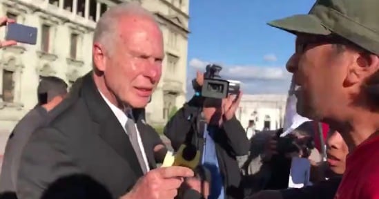 Previo a ingresar a ese recinto, el jefe edil se dirigió a un grupo de manifestantes que se encontraban en las afueras e intercambió algunas palabras con ellos.