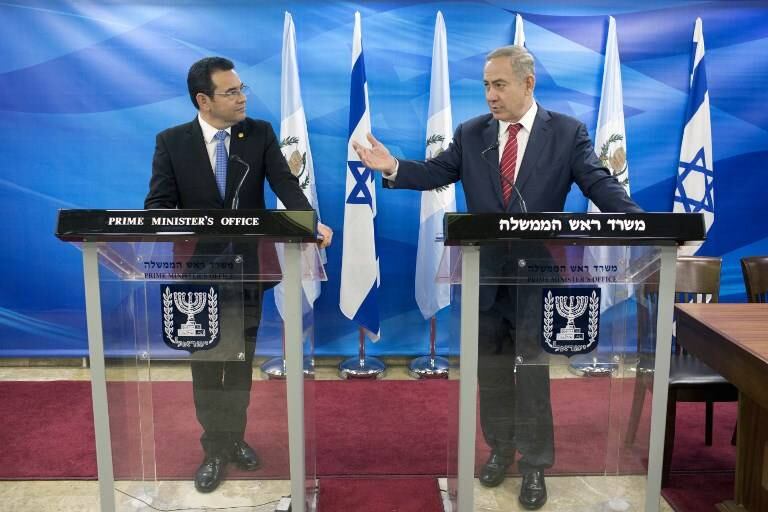 El mandatario Morales anunció el pasado 24 de diciembre, por medio de sus redes sociales, que la embajada de Guatemala en Israel sería retornada a Jerusalén. La sede diplomática actualmente se encuentra en Tel Aviv.