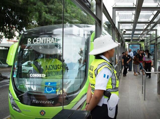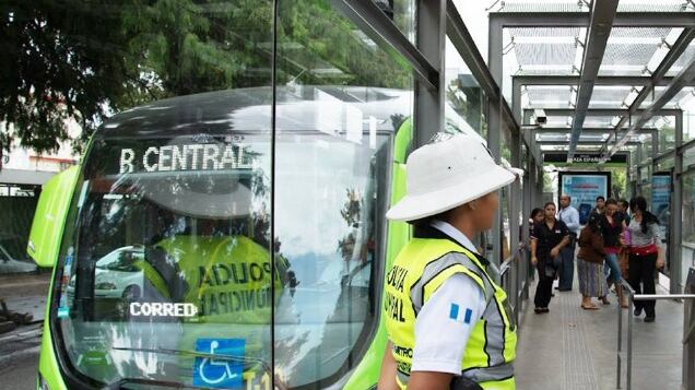 El sistema de transporte público Transmetro inició a funcionar en la Ciudad de Guatemala en febrero de 2007.