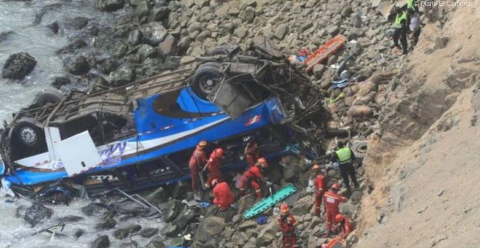 El autobús, que viajaba hacia Lima con al menos 53 pasajeros desde la ciudad de Huacho quedó volcado a metros del mar tras caer desde lo alto de la ruta.
