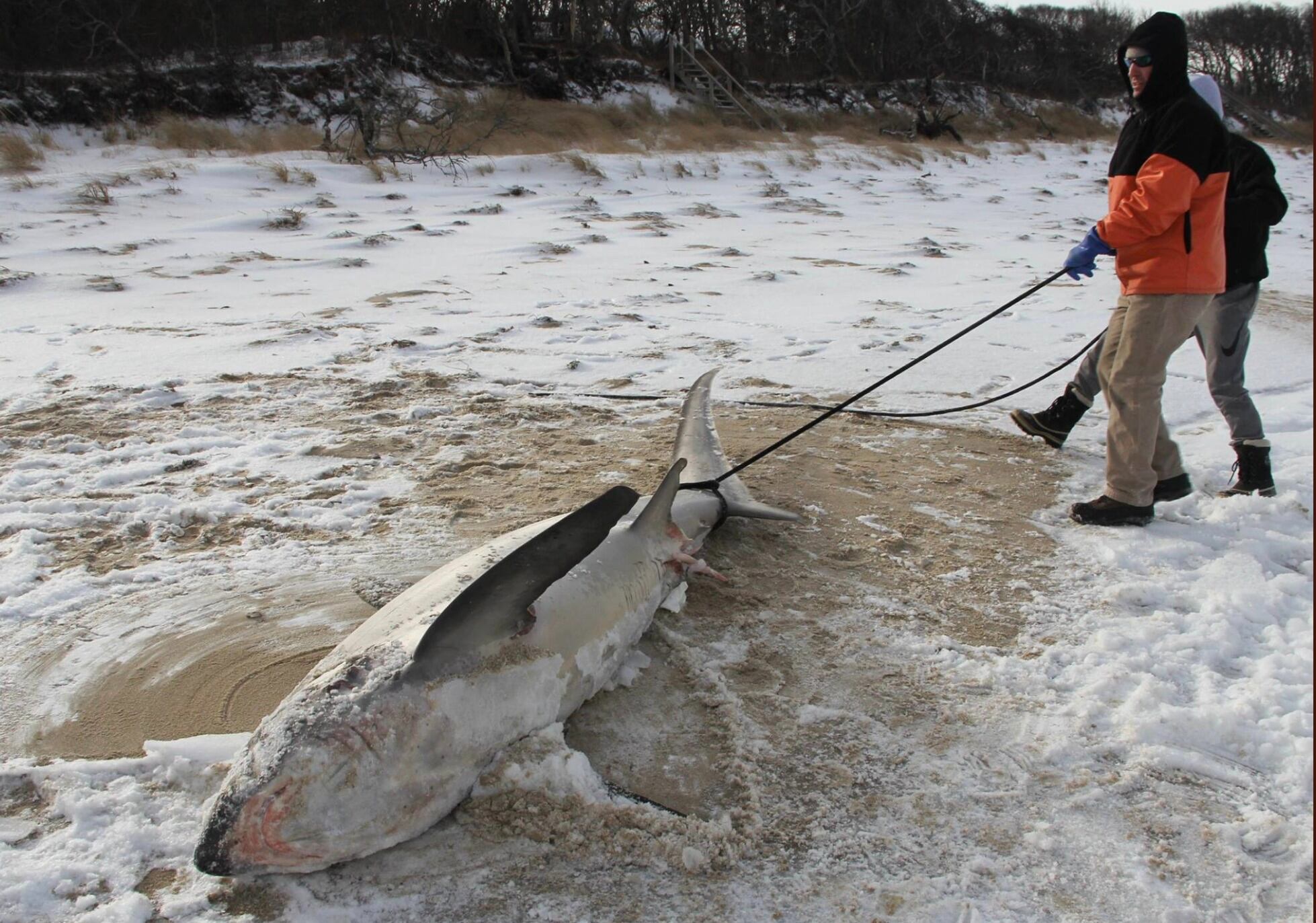 Los cadáveres han aparecido congelados en un playa de Massachusetts varados en la arena después de haber sufrido un shock causado por la baja temperatura del agua, según informó la Atlantic White Shark Conservancy, una organización sin ánimo de lucro dedicada a la conservación y estudio de los tiburones blancos en esa parte de la costa estadounidense.