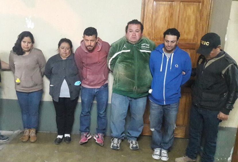 Los capturados fueron identificados como Mayra Adina Martínez Popol, de 49 años, Flora Alicia Pérez Álvarez, de 35, Luis Fernando Arriaza Castillo, de 32, Carlos Enrique Toledo Villagrán, de 43 y Josué David Pérez López, de 35.