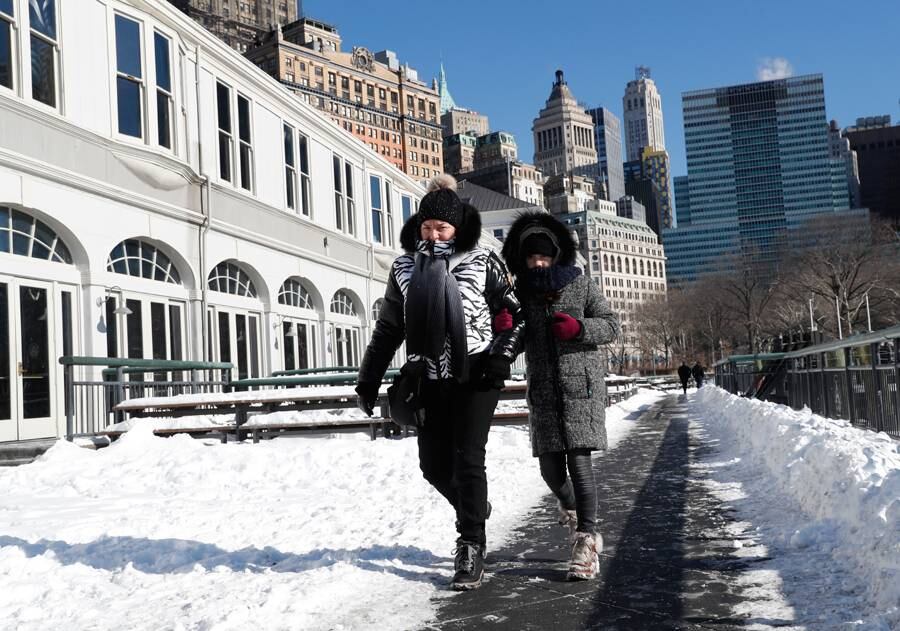 Muchos habitantes del noreste soportaron el fin de semana temperaturas gélidas con sensaciones térmicas brutales mientras prosigue el retiro de nieve después de la tormenta del jueves que dejó una capa de 46 centímetros (18 pulgadas) en algunos lugares.