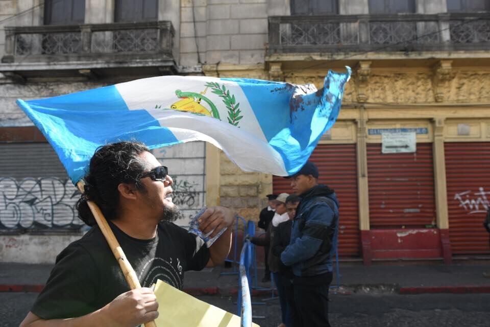 Uno de los inconformes que se encontraba en la octava calle y novena avenida del Centro Histórico, tuvo un intercambio de palabras con agentes de la Policía Nacional Civil (PNC) quienes impidieron su paso. Varias calles aledañas al Palacio Legislativo fueron cerradas.
