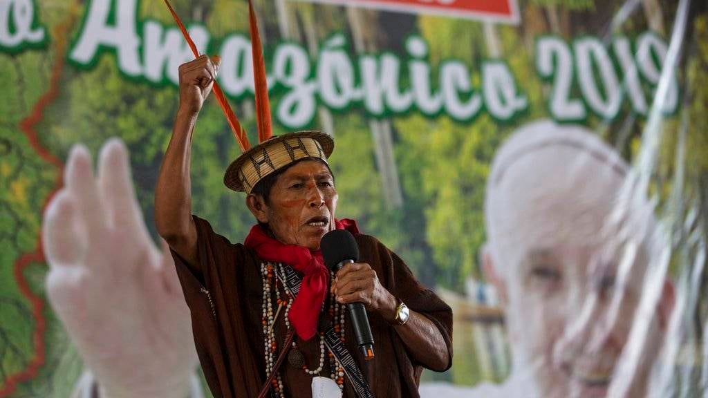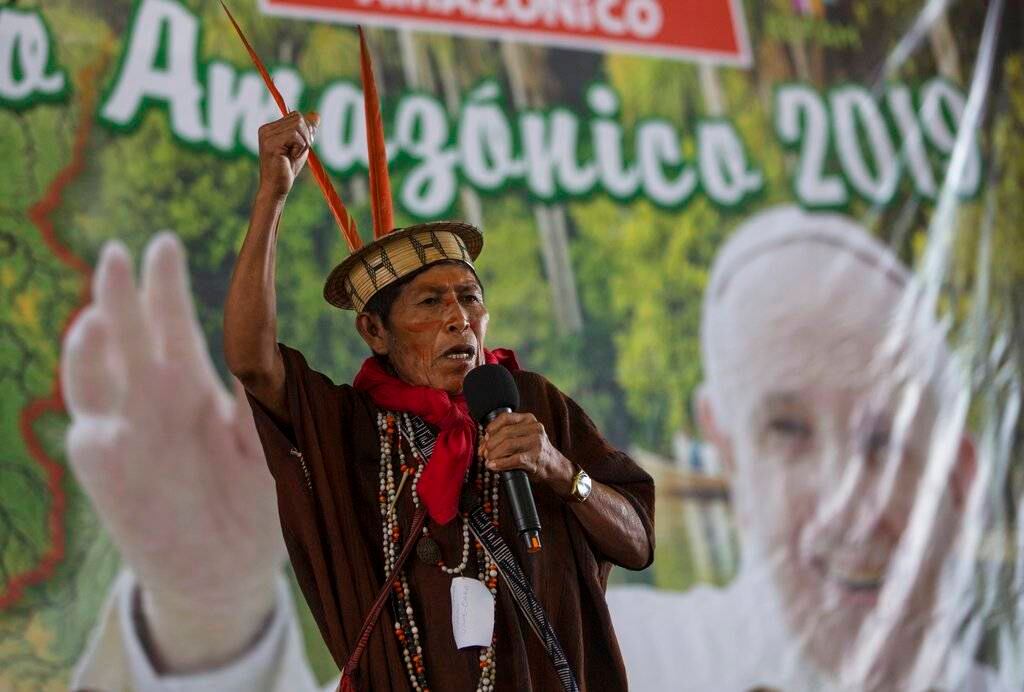 Líderes indígenas, muchos con adornos de plumas de colores brillantes, se mostraron optimistas con que el papa pueda servir de enlace con el gobierno de Perú para ayudar a resolver asuntos pendientes desde hace tiempo como los derechos sobre la tierra.