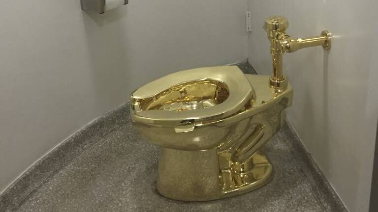 A cambio ofreció un inodoro en oro macizo de Maurizio Cattelan, que se exhibió en el Guggenheim de septiembre de 2016 hasta el verano de 2017.