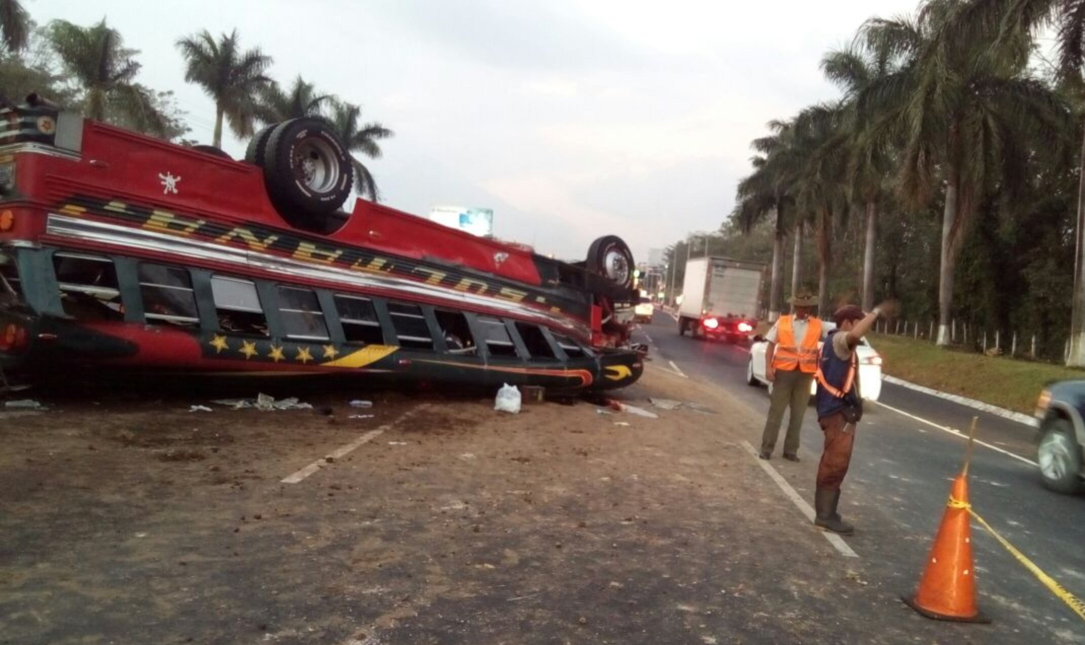 En el accidente un pasajero falleció y fue identificado como Orlando Perez Vega, de 22 años, originario de Escuintla, en tanto que los heridos fueron trasladados al Hospital Regional de Escuintla con golpes y heridas en distintas partes del cuerpo.