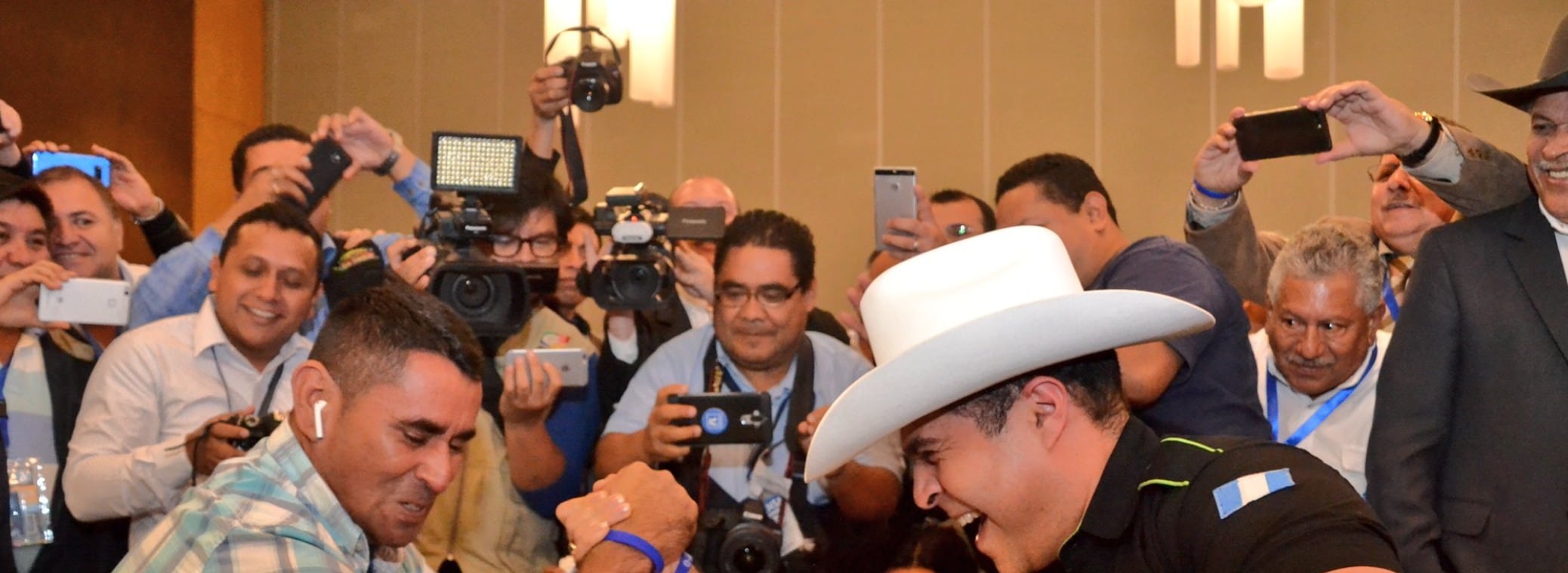 Pero la actividad protocolaria se rompió durante un momento en el que el edil de Mixco, Neto Bran, y Esduin Javier, de Ipala, Chiquimula, vestidos con un atuendo "country" decidieron ver quién era el alcalde más fuerte con un pulso.